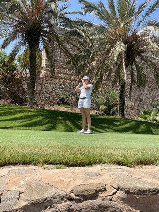 Ich werde nun ein paar LET Access Turniere in Europa spielen. Diese Woche bin ich in Malaga, auf dem Golfplatz Torrequebrada - ein hügeliger Platz direkt am Meer. Jede Bahn ist sehr interessant, wobei der Platz rauf und runter verläuft und dies ist bei den Temperaturen doch auch eine Herausforderung ist (Danke MOM fürs schieben :-)). Die Greens absolut spannend, je nach Fahnenposition sind die Bälle schwierig zu stoppen, also versuche ich den Ball optimal zu platzieren.